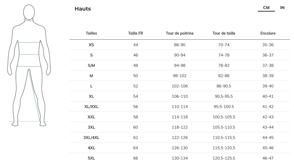 Guide des tailles adulte
